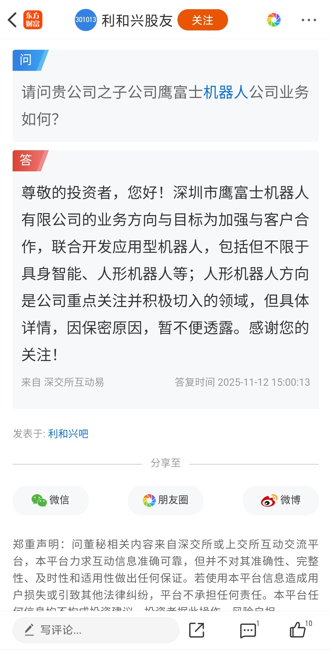$利和兴(SZ301013)$ 利和兴,华为+人形机器人+新凯来光刻机+美好寓意