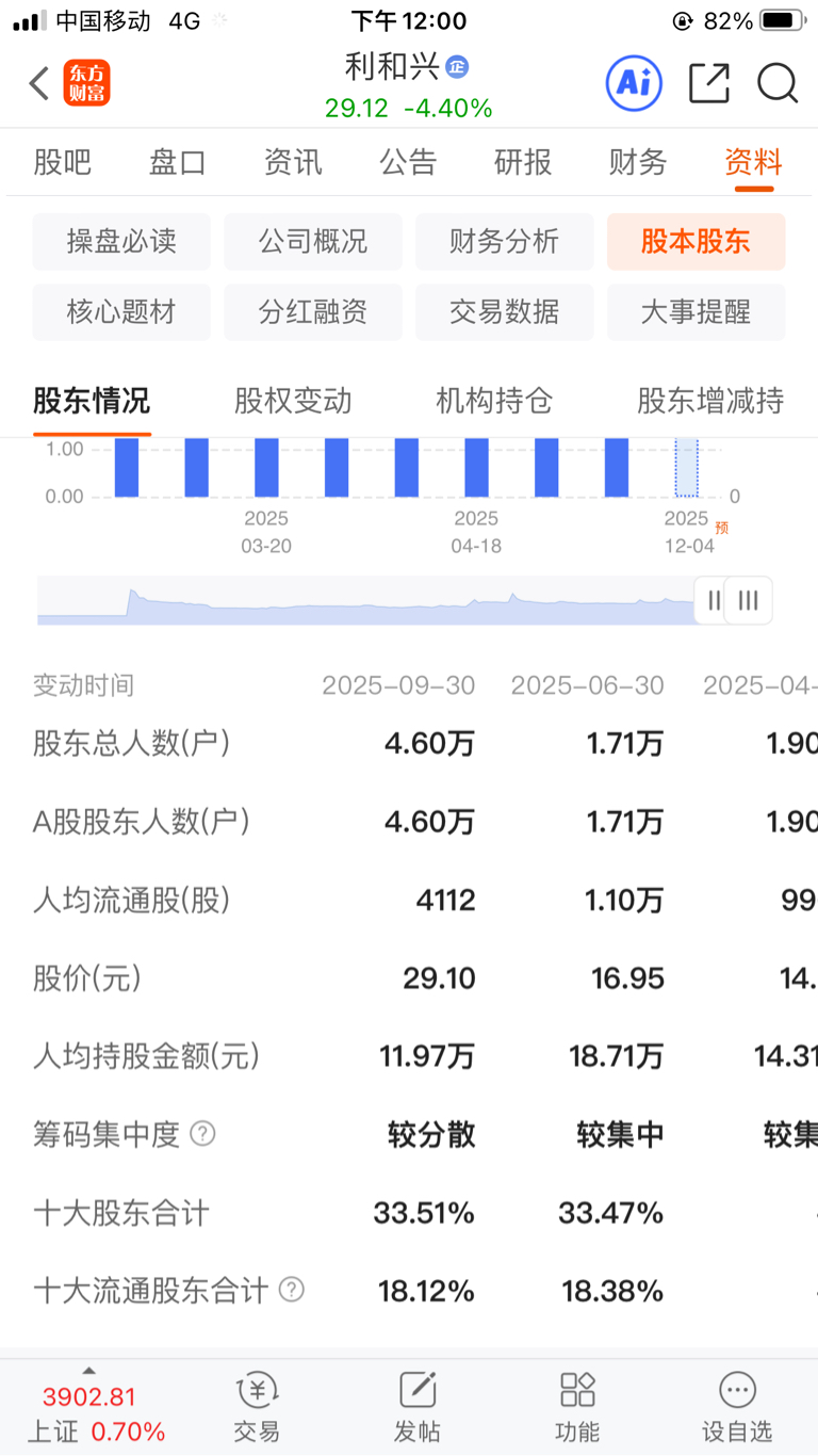 $利和兴(SZ301013)$ 4.6万X4112股等于多少?全部筹码都派发给散户了吗?
