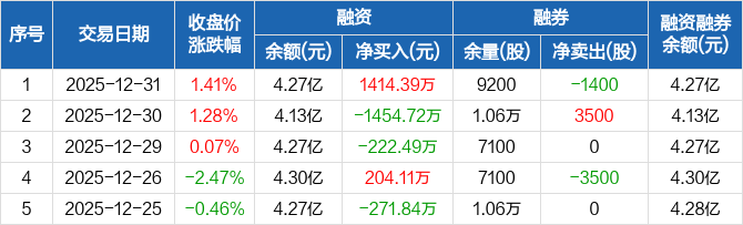 利和兴:融资净买入1414.39万元,融资余额4.27亿元(12-31)