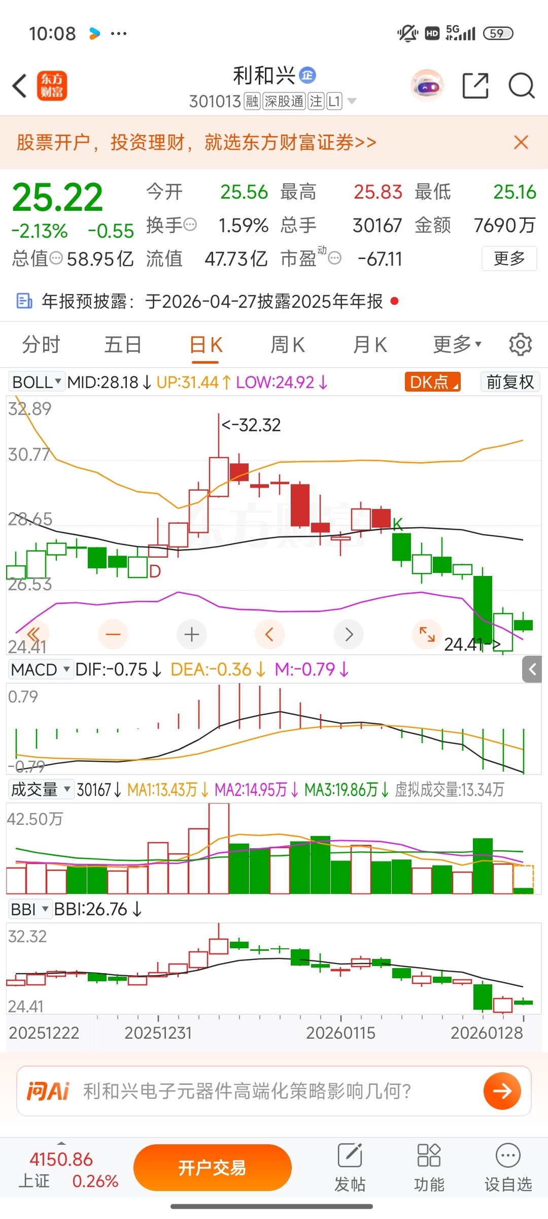 $利和兴(SZ301013)$ 很典型的沿着boll线下轨走下降渠道,