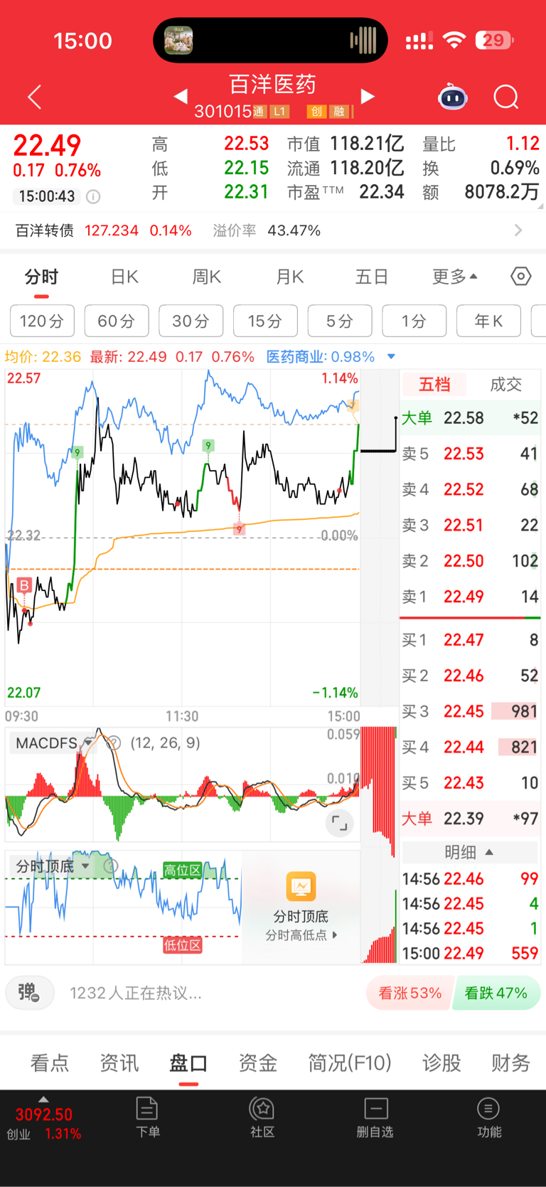 $百洋医药(SZ301015)$ 兄弟们 加仓干 企稳了
