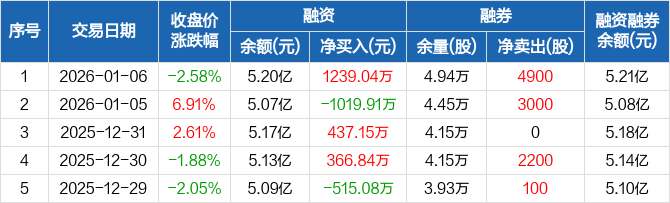百洋医药:融资净买入1239.04万元,融资余额5.2亿元(01-06)