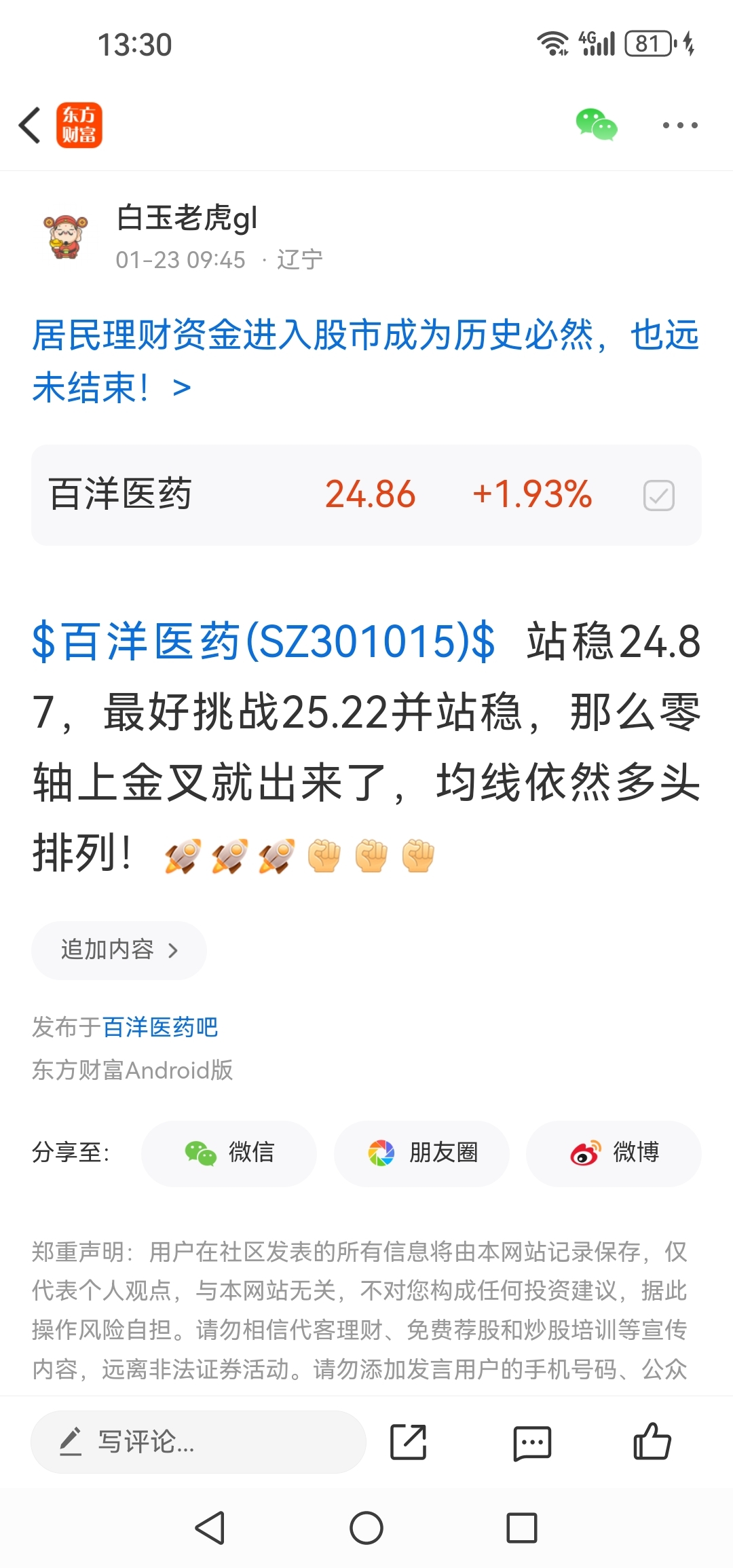 温馨提示: 1.根据《证券法》规定,禁止编造、传播虚假信息或者误导性信息,扰乱证券市场;2.用户在本社区发表的所有资料、言论等仅代表个人观点,与本网站立场无关,不对您构成任何投资建议。用户应基于自己的独立判断,自行决定证券投资并承担相应风险。《东方财富社区管理规定》