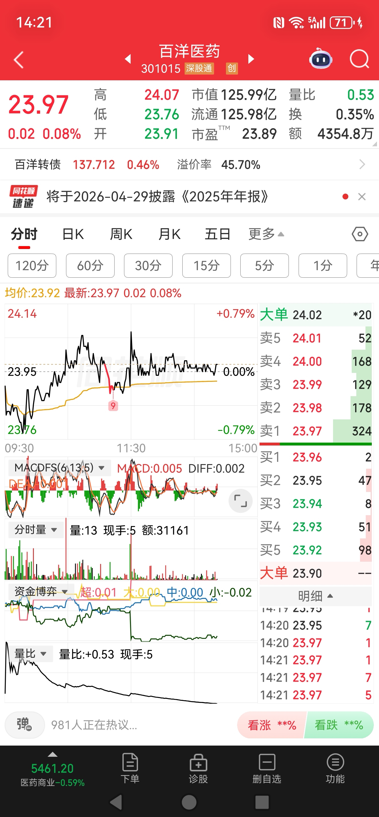 $百洋医药(SZ301015)$ 缩到地量了,1.29的振幅还压单子主力大哥真难为你了!