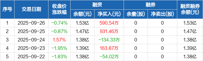 雷尔伟:融资余额1.53亿元,创历史新高(09-26)