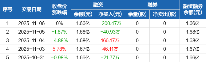 雷尔伟:融资净偿还200.47万元,融资余额1.66亿元(11-06)