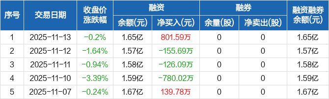 雷尔伟:融资净买入801.59万元,融资余额1.65亿元(11-13)