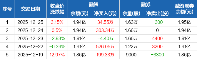 雷尔伟:融资余额1.94亿元,创历史新高(12-25)