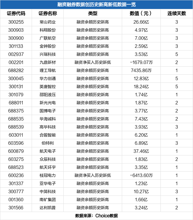 1月6日沪深两市共有148只股票两融数据创历史新高/新低,部分数据如下: