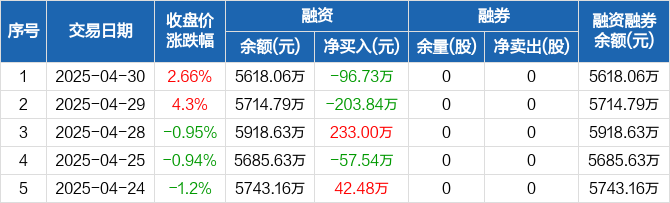 漱玉平民:融资净偿还96.73万元,融资余额5618.06万元(04-30)
