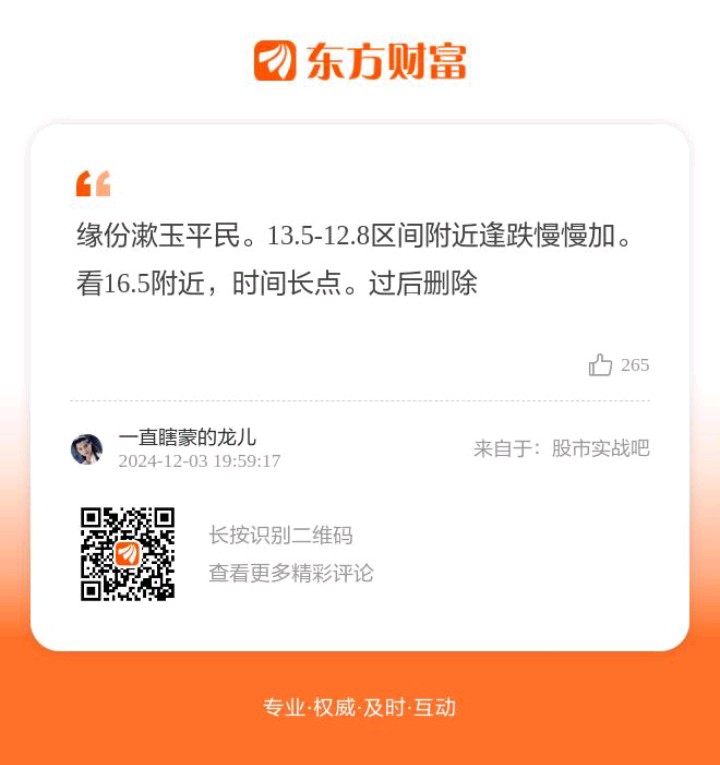 温馨提示: 1.根据《证券法》规定,禁止编造、传播虚假信息或者误导性信息,扰乱证券市场;2.用户在本社区发表的所有资料、言论等仅代表个人观点,与本网站立场无关,不对您构成任何投资建议。用户应基于自己的独立判断,自行决定证券投资并承担相应风险。《东方财富社区管理规定》
