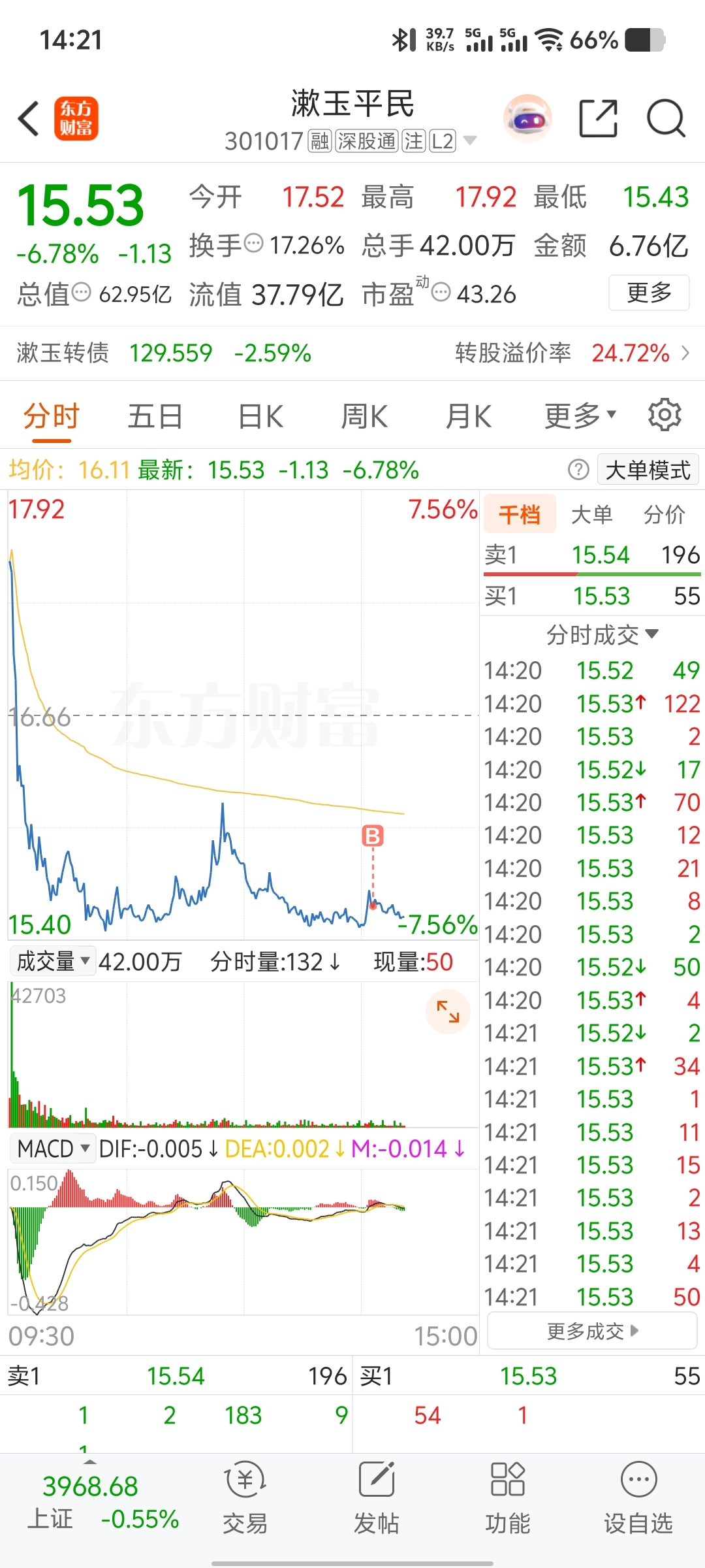 $漱玉平民(SZ301017)$ 买一手玩玩