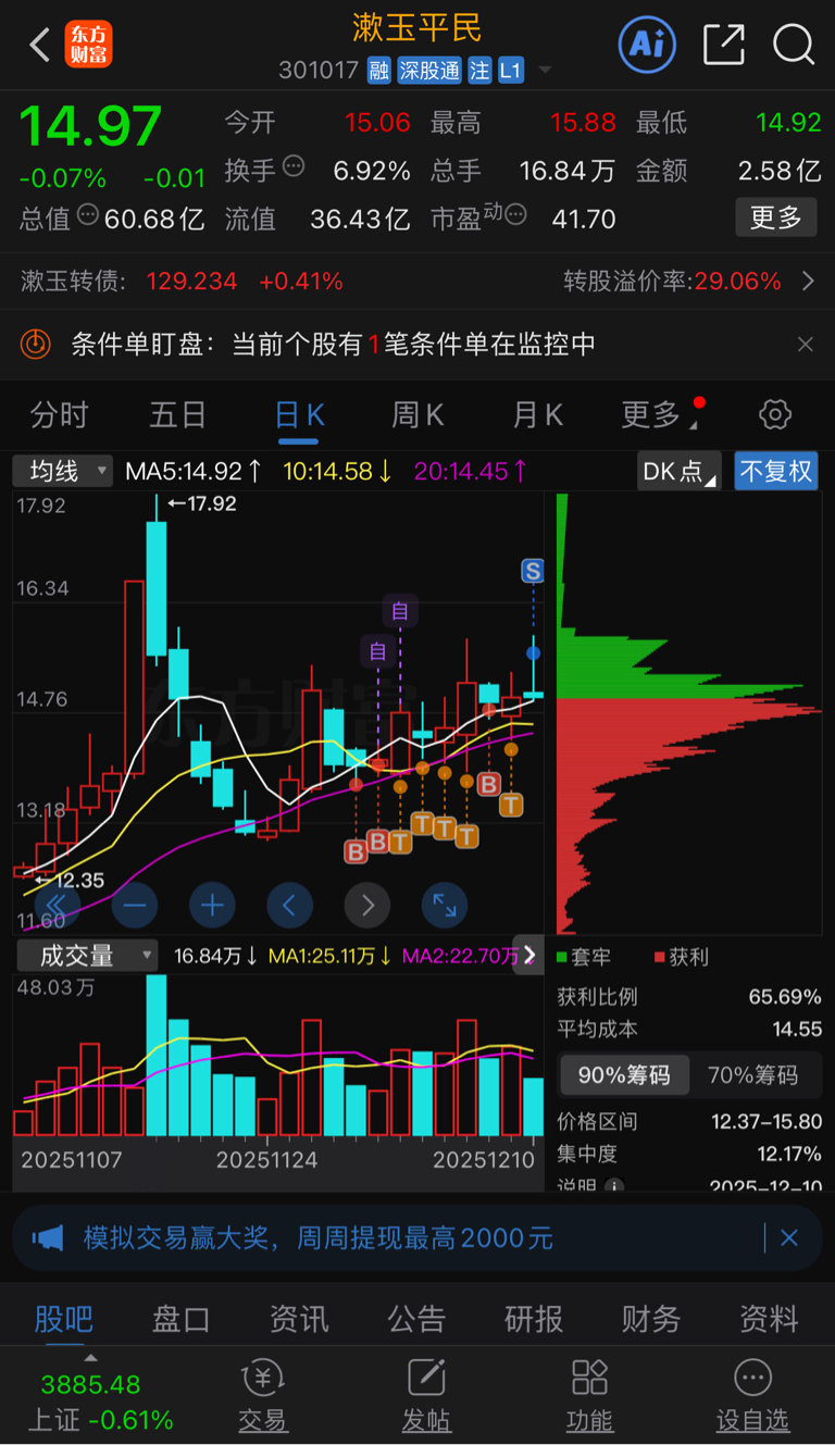 $漱玉平民(SZ301017)$ 这股真有意思,每天都出来浪一下,完了就窝着。