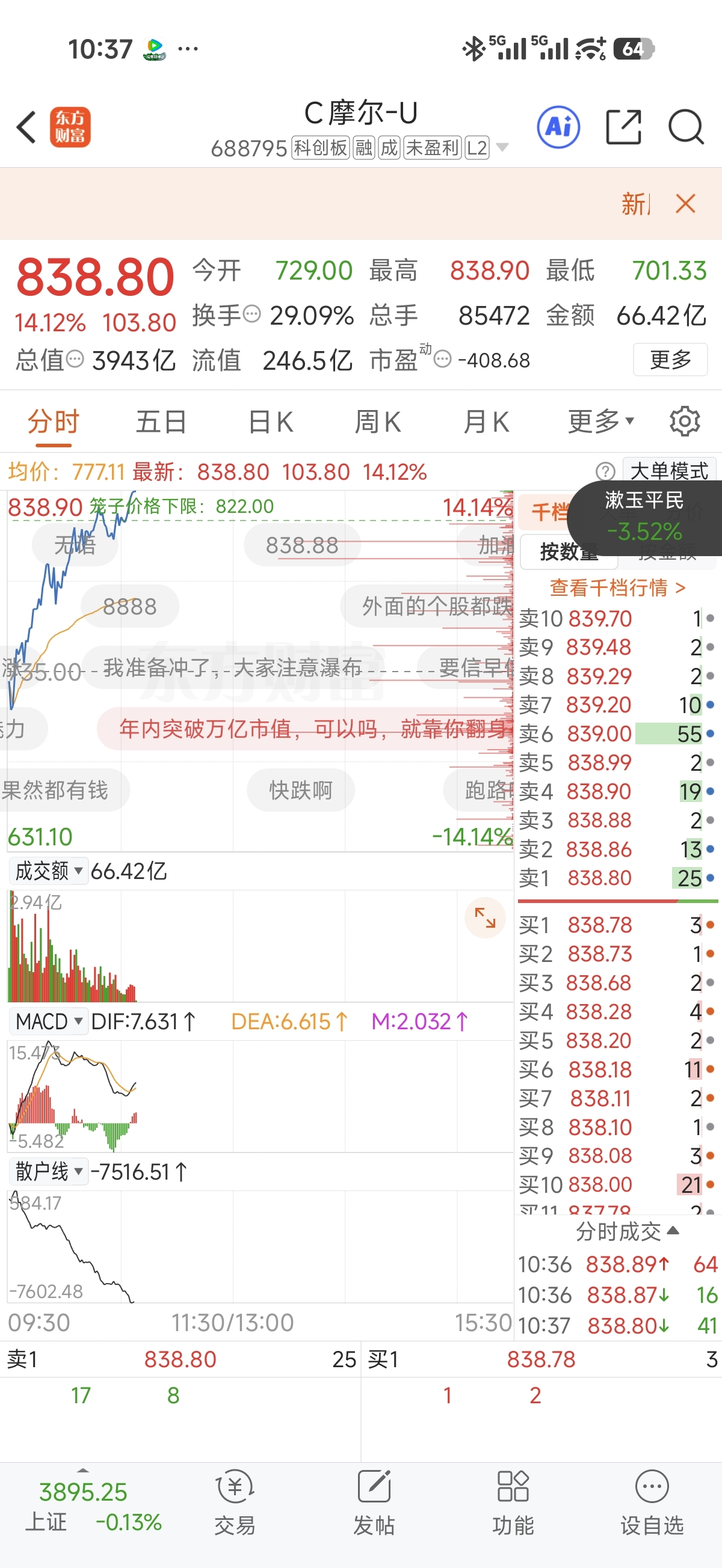 $漱玉平民(SZ301017)$ 全去这个了,一小时66亿成交额,小散没钱没权限进不去
