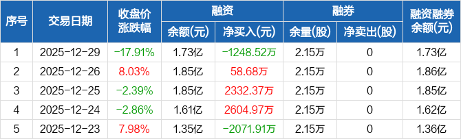 漱玉平民:融资净偿还1248.52万元,融资余额1.73亿元(12-29)