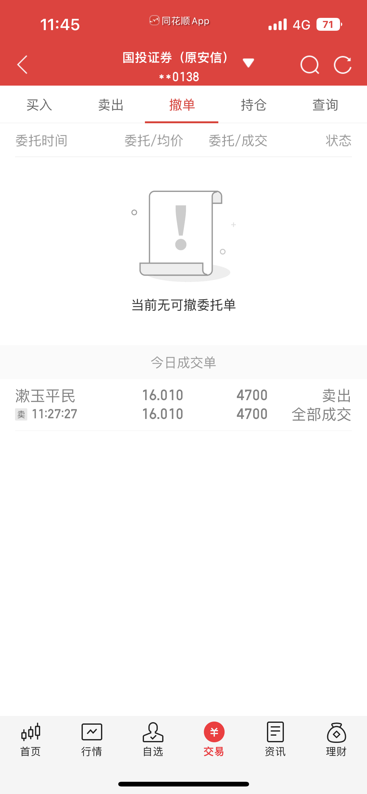 感谢装大哥,昨天200手没有成交,今天全部还你 谢谢哦!