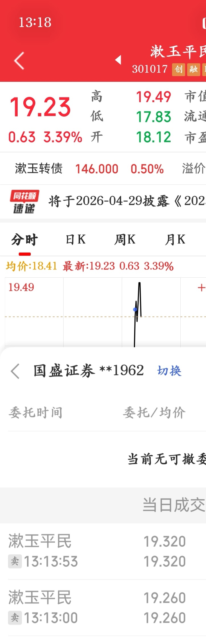 $漱玉平民(SZ301017)$ 留着你知道会赚钱,没曾想这么刺激,早上出了券商补的仓,这会T出了。。。