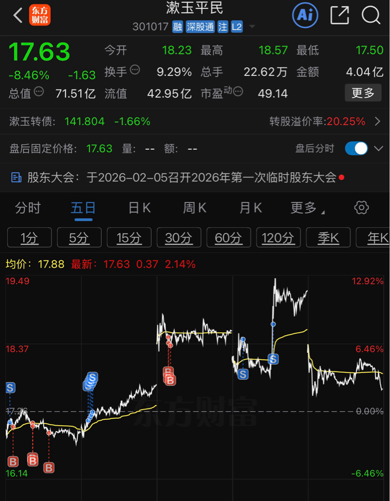 $漱玉平民(SZ301017)$ 好在昨天拉高时跑了,挣了几十块,要不今天钱又套进去了,又是亏损严重了