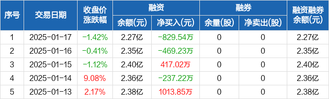 申菱环境:融资净偿还829.54万元,融资余额2.27亿元(01-17)
