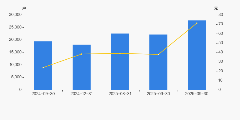 截至2025年9月30日,公司最新总股本为2.66亿股,其中流通股本为1.99亿股。户均持有流通股数量由上期的8969股下降至7152股,户均流通市值51万元。