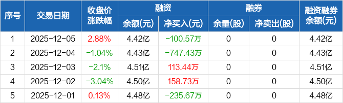 申菱环境:融资净偿还100.57万元,融资余额4.42亿元(12-05)