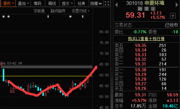 申菱环境黄线(庄家成本线),自救回血,回血结束,卖出了结。