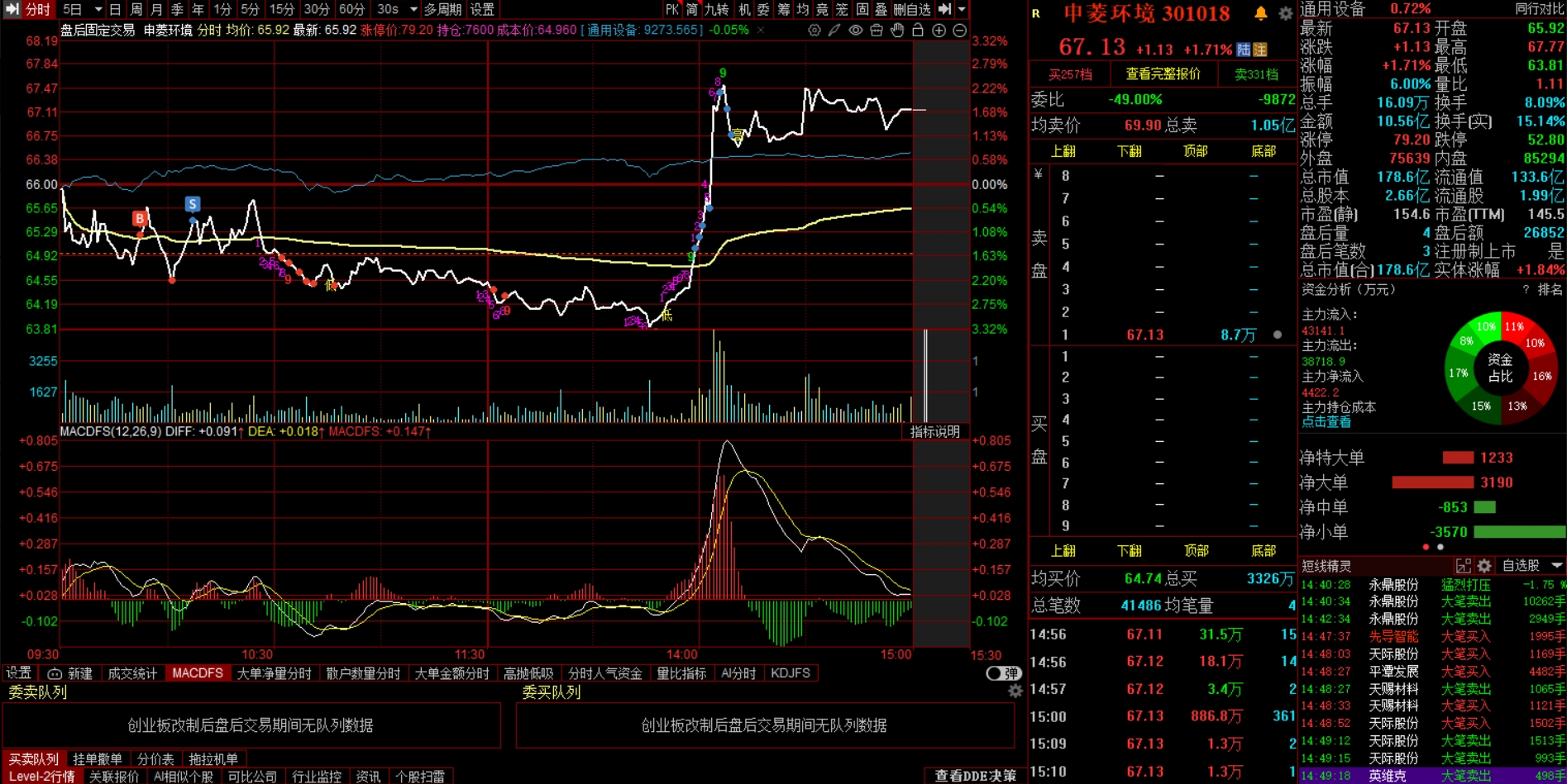 $申菱环境(SZ301018)$ 今天节奏不错。还好没被英维克给带坏了!今天做T还是挺满意