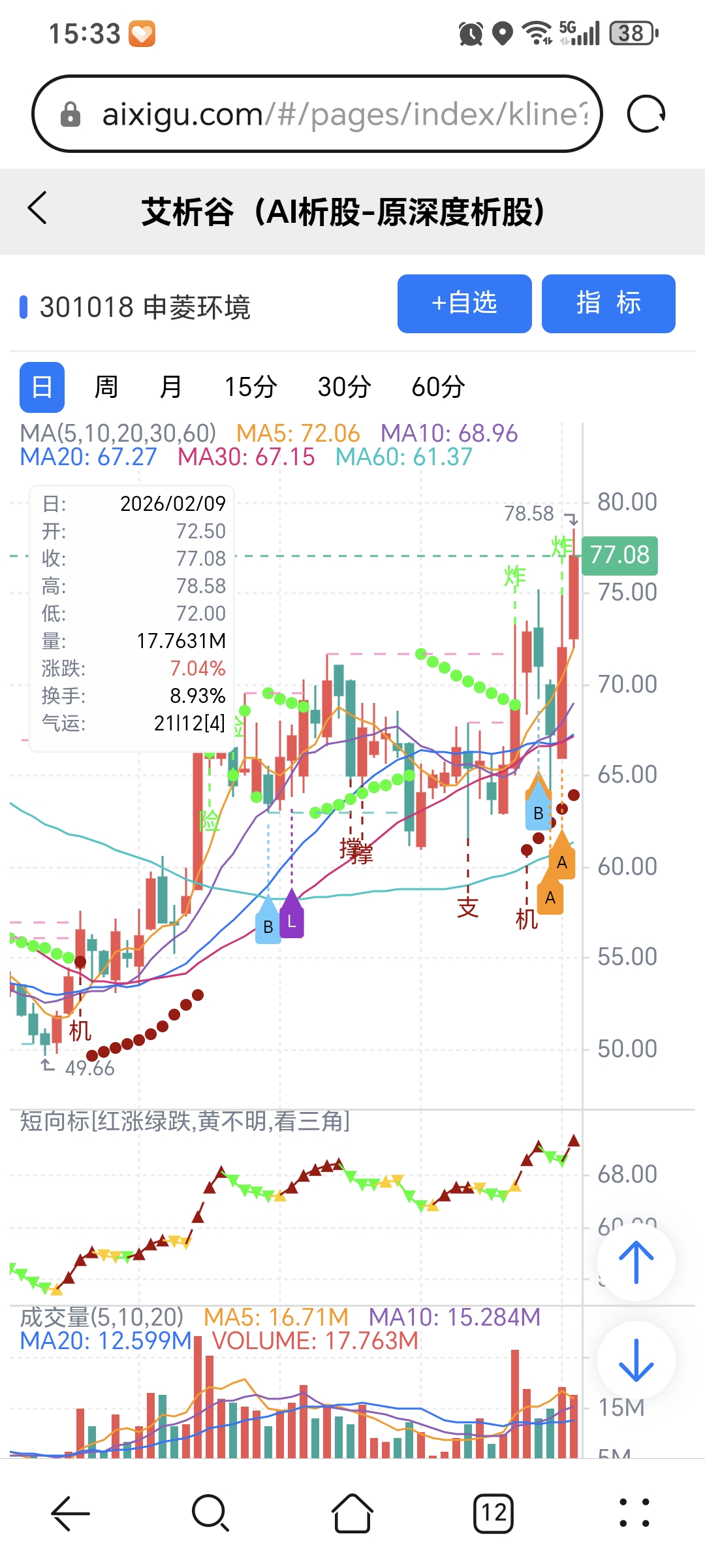 风险:股价下穿艾短波或红变绿、绿字。