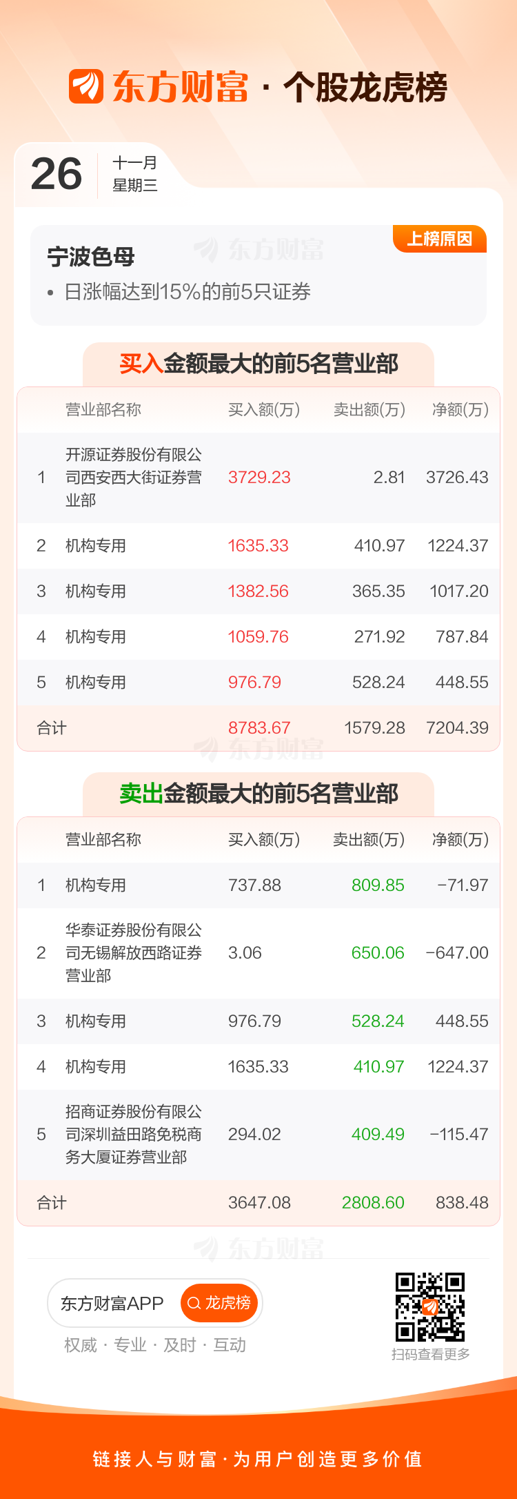 宁波色母(301019)龙虎榜数据(11-26)