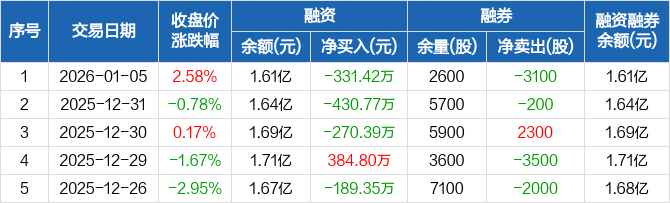 宁波色母:连续3日融资净偿还累计1032.58万元(01-05)