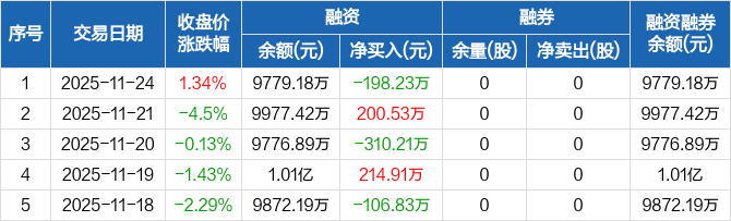 密封科技:融资净偿还198.23万元,融资余额9779.18万元(11-24)