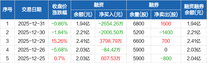 英诺激光:融资净偿还2654.26万元,融资余额1.94亿元(12-31)