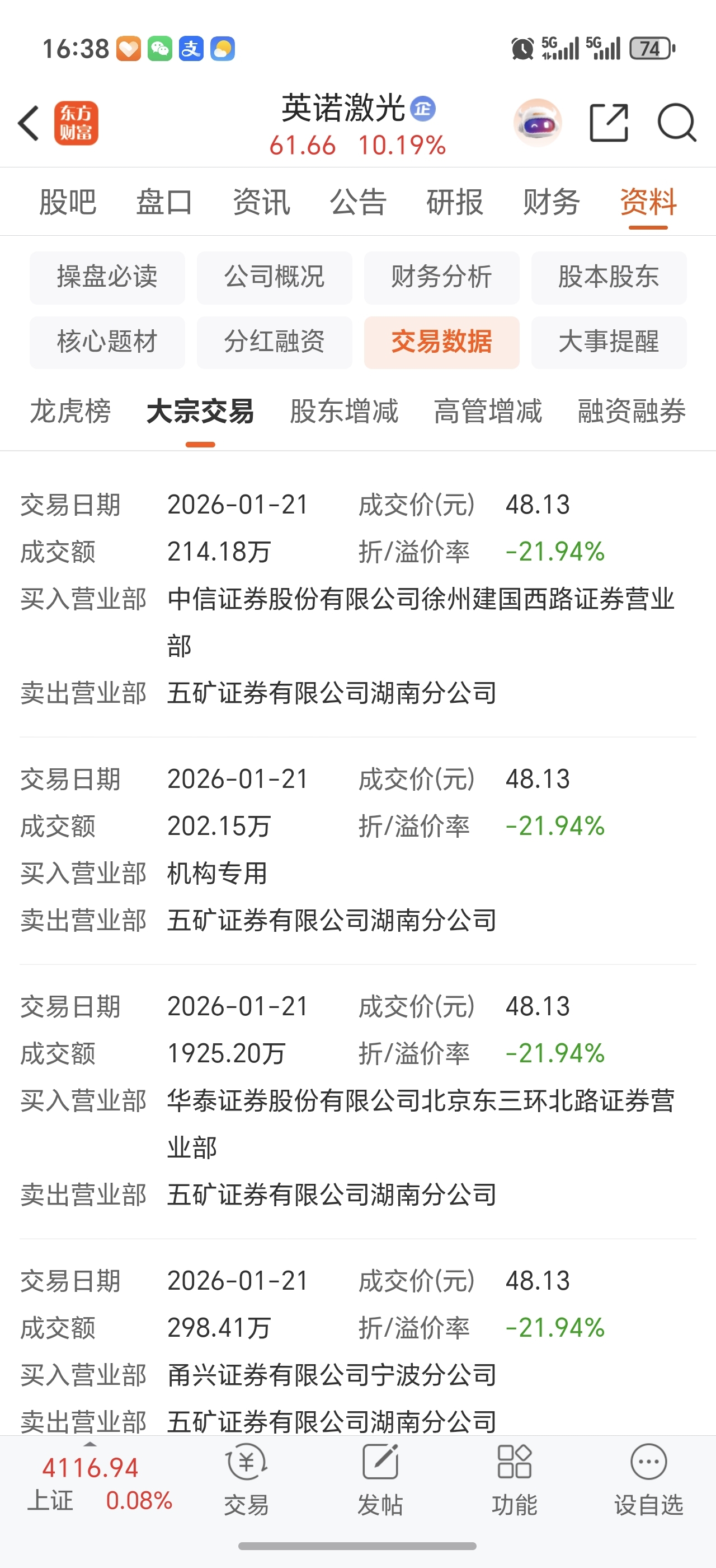 $英诺激光(SZ301021)$ 大宗交易了100万股