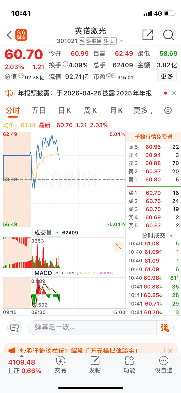 $英诺激光(SZ301021)$ 四个点到手了