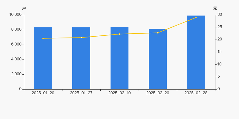 2025年1月20日至今,公司股东户数显著增长,区间涨幅为18.73%。2025年1月20日至2025年2月28日区间股价上涨40.80%。