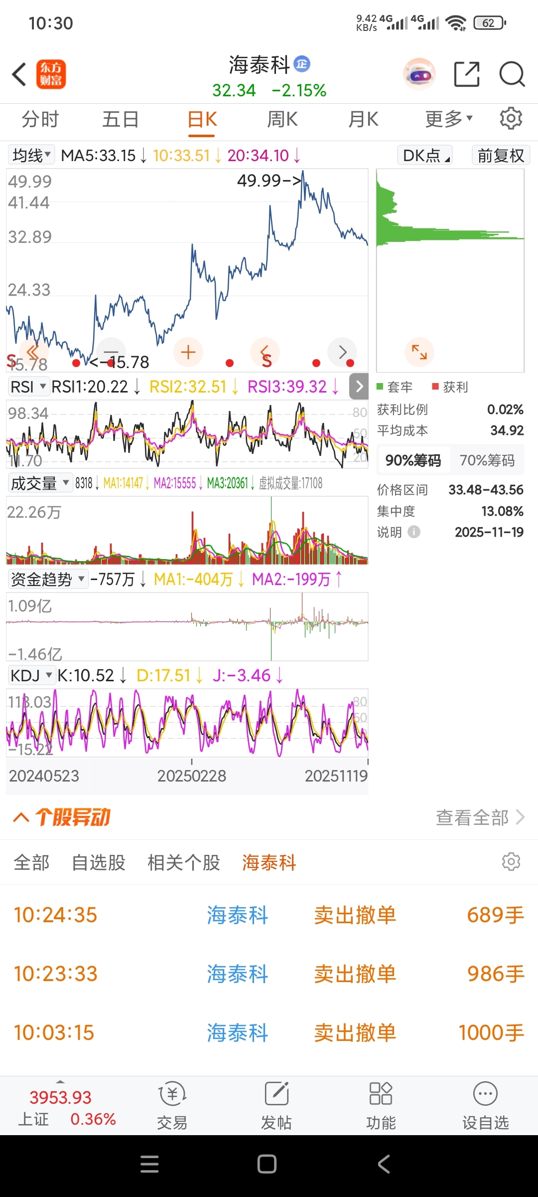 $海泰科(SZ301022)$ 0.02%获利, 坐阳台看戏