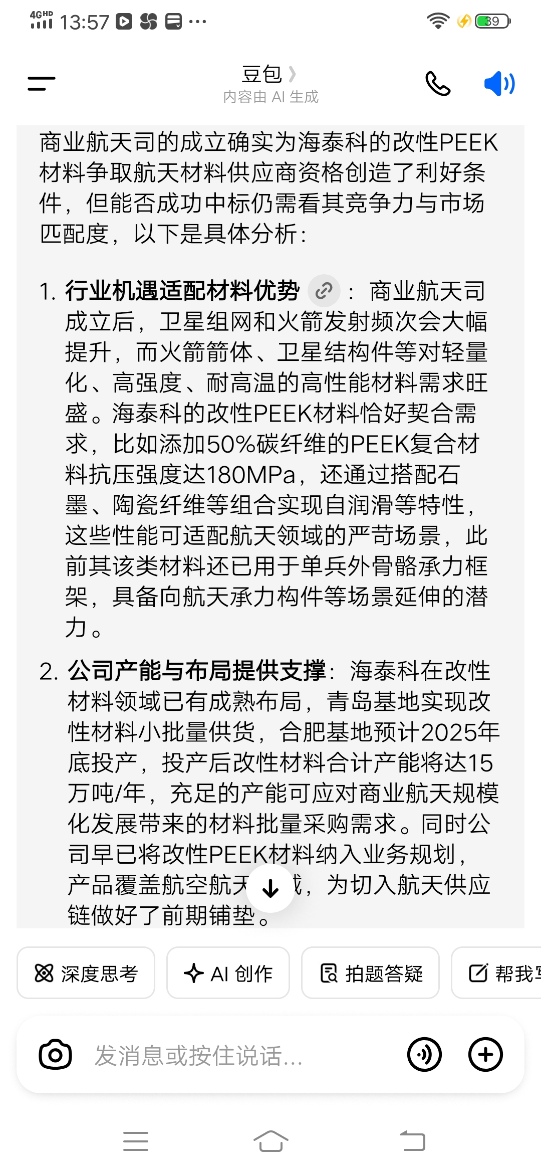 豆包对海泰科改性PEEK材料用途的分析如下: