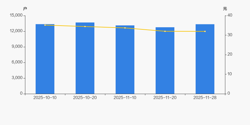 2025年10月10日至今,公司股东户数有所下降,区间跌幅为0.12%。2025年10月10日至2025年11月28日区间股价下降9.16%。