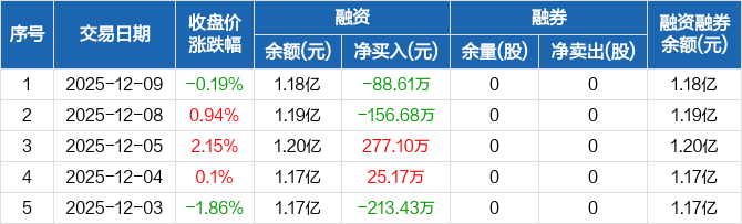海泰科:融资净偿还88.61万元,融资余额1.18亿元(12-09)