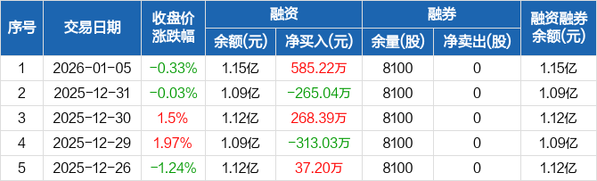海泰科:融资净买入585.22万元,融资余额1.15亿元(01-05)