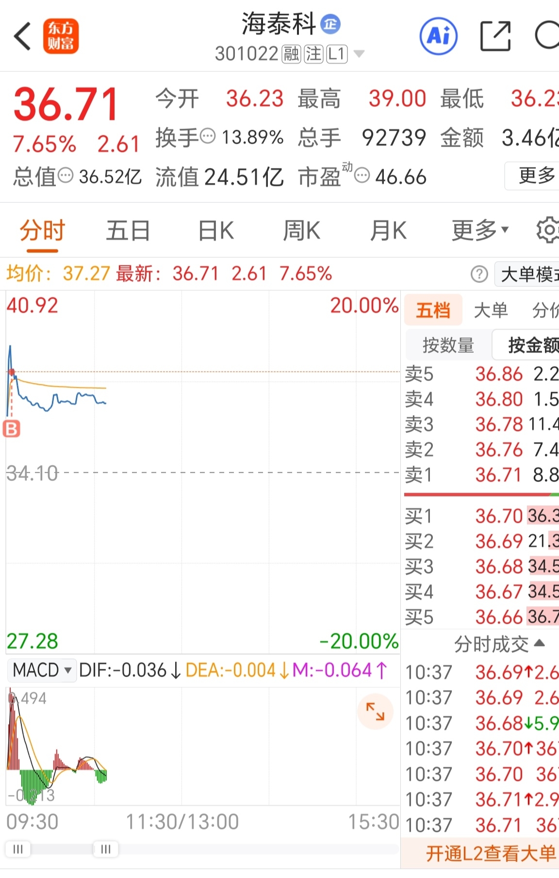 $海泰科(SZ301022)$ 早盘高点买的,能别套我吗……瑟瑟发抖