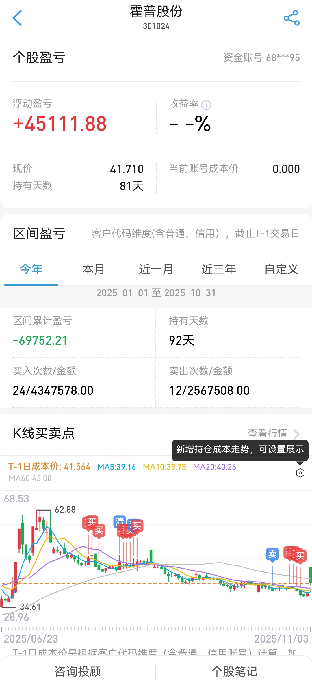 $霍普股份(SZ301024)$ 持股81天,回本了,走了