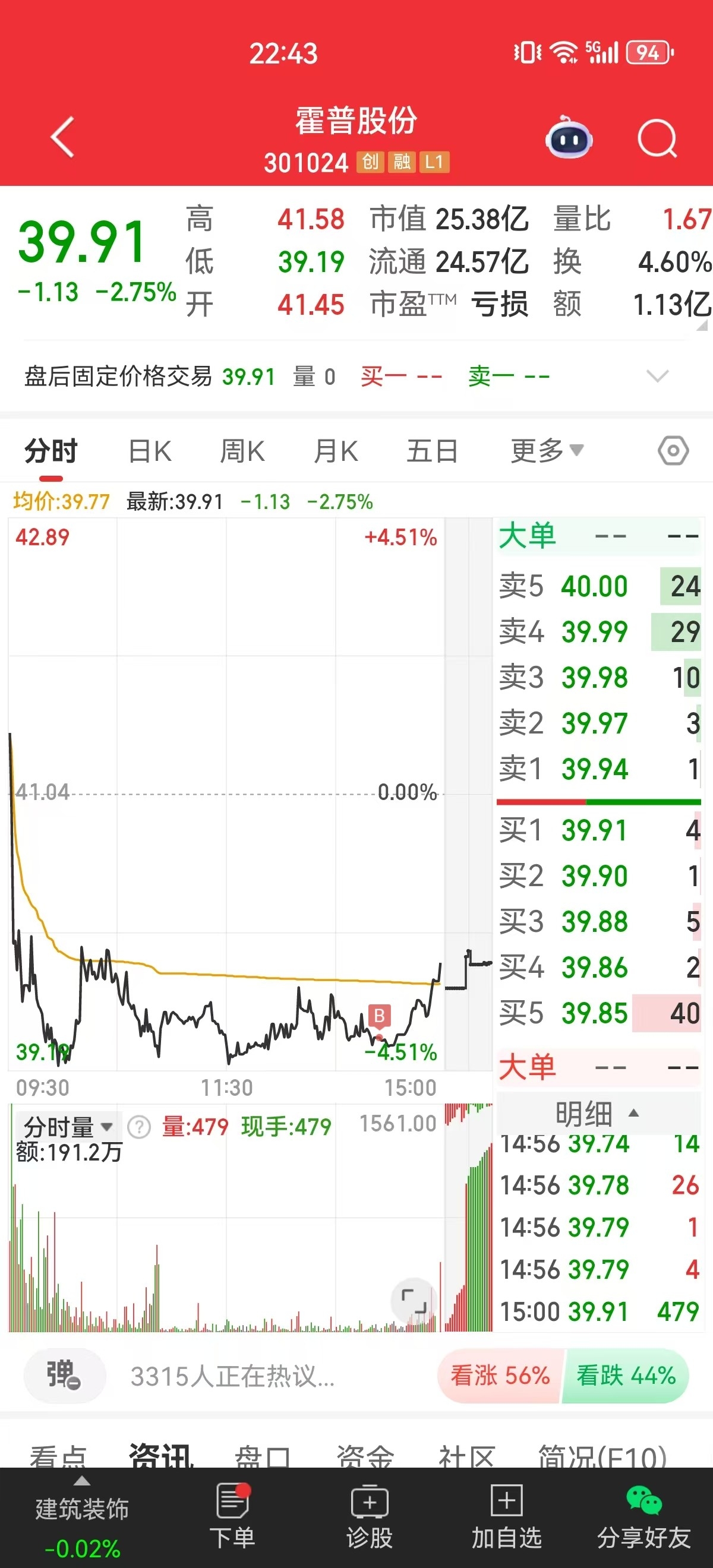 下午买入301024霍普股份,光伏+风电+储能大单,周一跳空高开,解放上方套牢,
