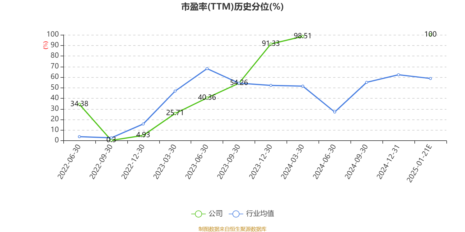 市盈率、市净率为负时,不显示当期分位数,会导致折线图中断。