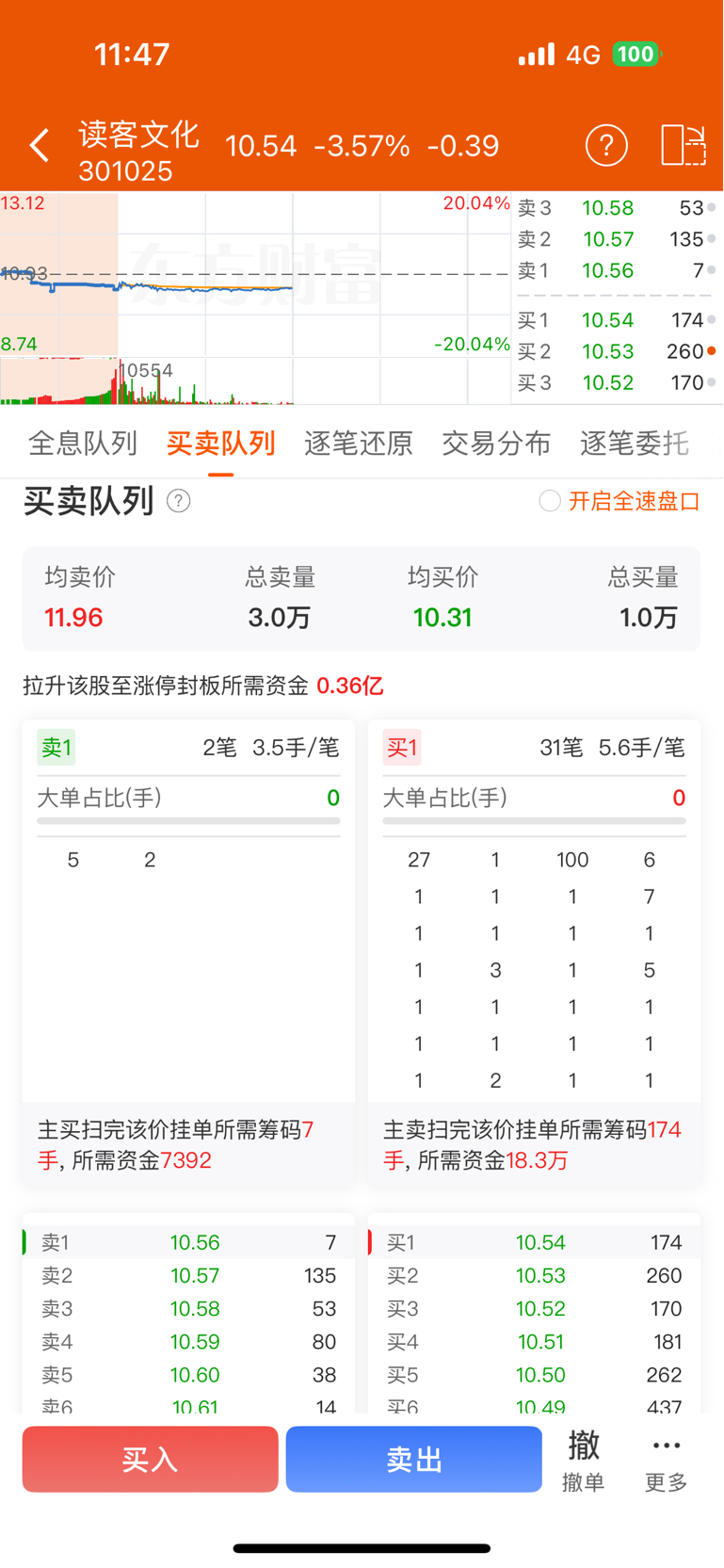 $读客文化(SZ301025)$ 三千多万才能拉到涨停
