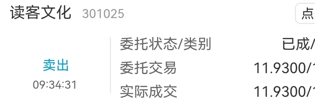 $读客文化(SZ301025)$ 早盘冲高回落,还是没出在高点,短线操作七八个点知足了。