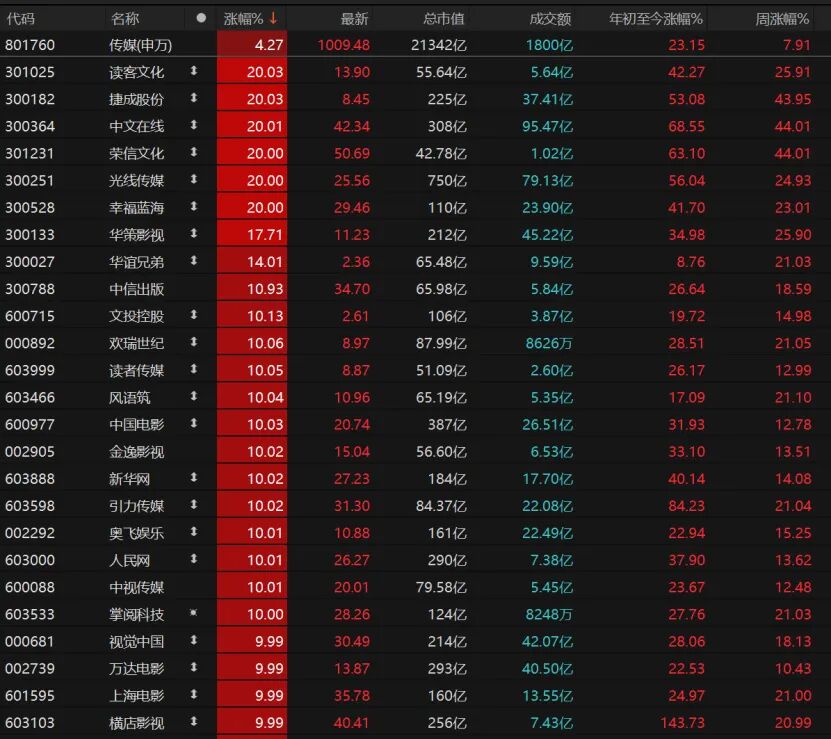 传媒板块掀涨停潮