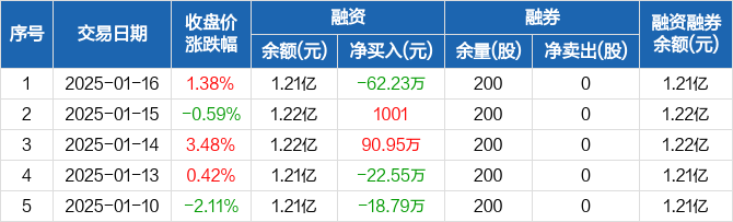 浩通科技:融资净偿还62.23万元,融资余额1.21亿元(01-16)