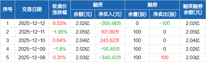 浩通科技:融资净偿还260.48万元,融资余额2.02亿元(12-12)