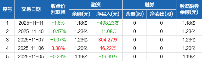 华蓝集团:融资净偿还498.23万元,融资余额1.18亿元(11-11)